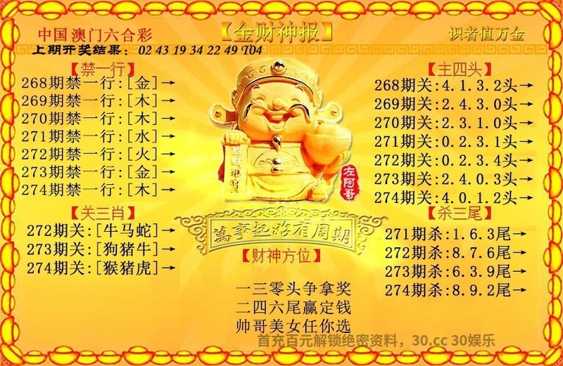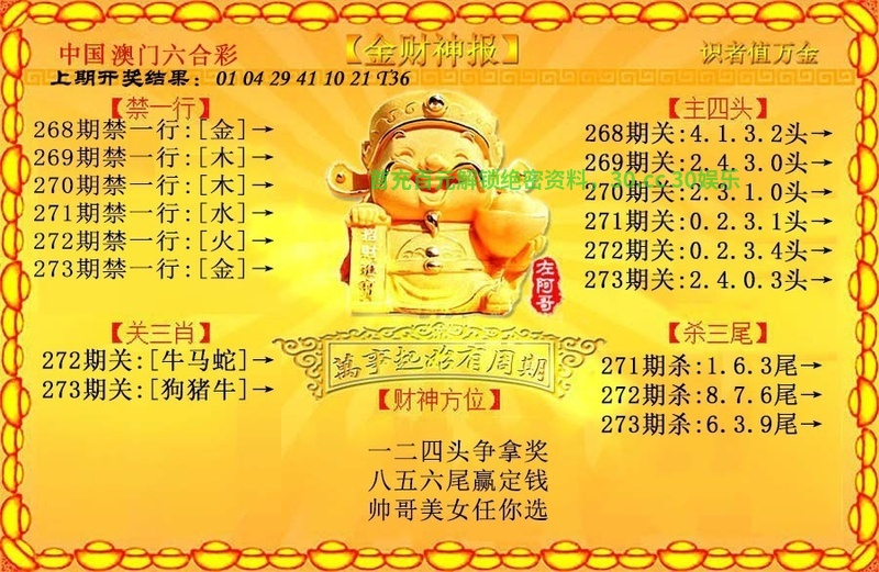 273期:☀吉凶中特☀【吉美】开:虎04错 |